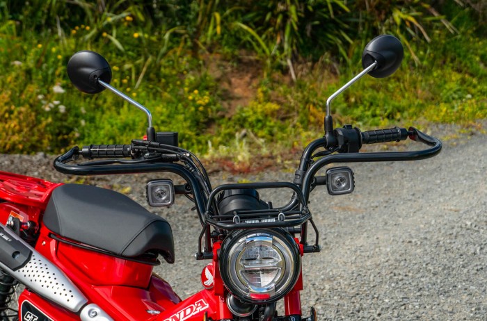 Thanks to the CT125s large rear carry rack, the rear frame has been extended, by ensuring that the new head pipe and its surroundings have been reinforced, as well as focusing on the improvement of stability while riding on gravel roads or on farm.